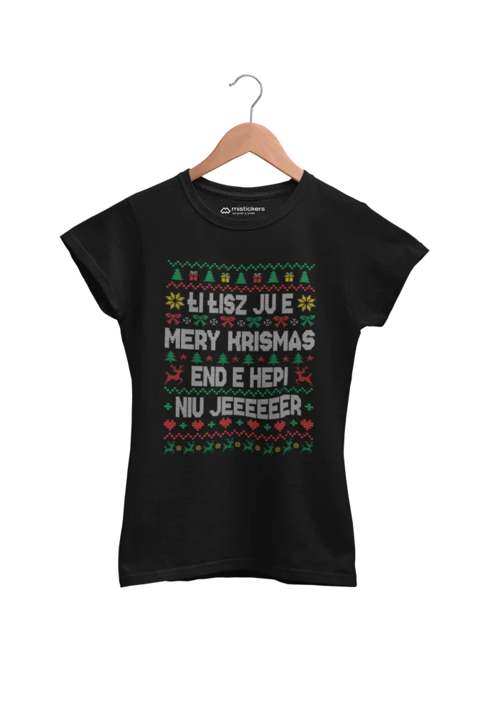 Koszulka świąteczna damska „Łi łisz ju e Mery Krismas”