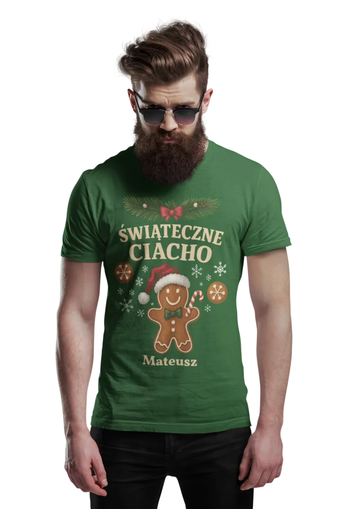 Koszulka „Świąteczne Ciacho” z imieniem to hitowy prezent dla każdego faceta z dystansem do siebie i poczuciem humoru.