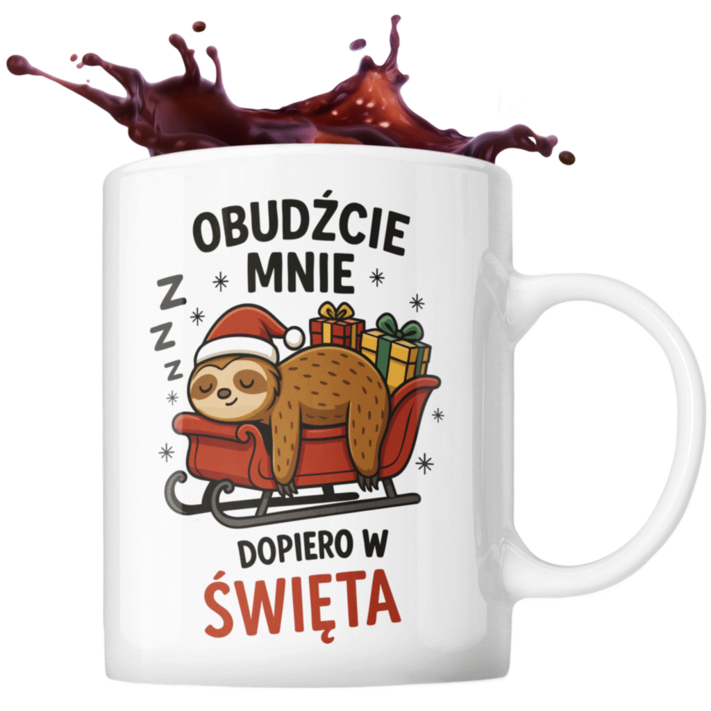 Kubek Świąteczny „Obudźcie mnie dopiero w Święta” – idealny prezent dla śpiochów i leniuszków