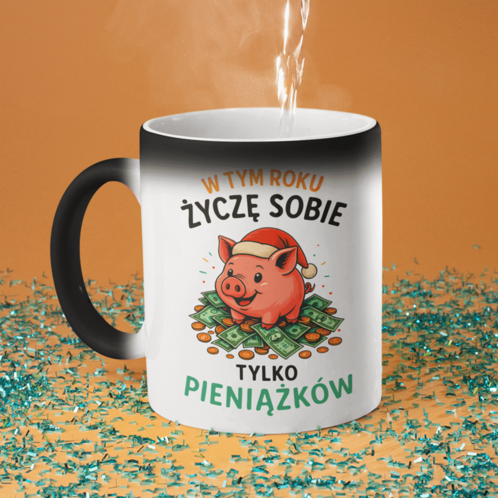 Ten kubek z uroczą świnką w czapce Mikołaja to idealny prezent dla wszystkich, którzy cenią sobie świąteczny humor i szczerość bez owijania w papier ozdobny.